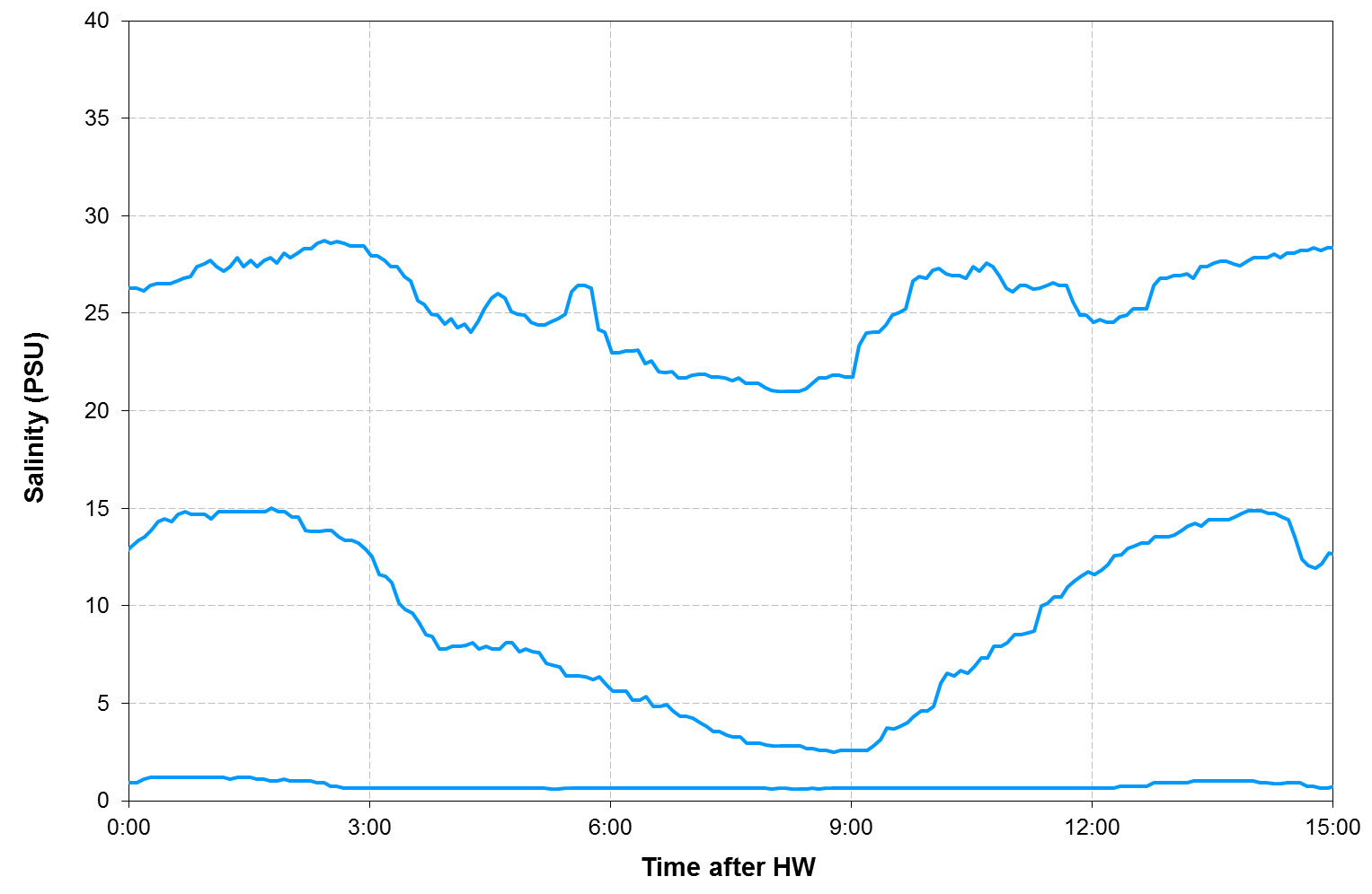 The Elbe dataset contained conductivity values. Based on the UNESCO formula (Fofonoff and Millard, 1983) conductivity values were converted to PSU values. For the Weser, data were directly provided as PSU values and for the Humber the dataset contained ppt conductivity values.