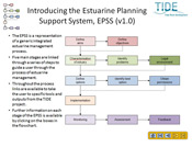The Estuarine Planning Support System (EPSS) is an interactive tool designed to guide the user through a generic integrated estuarine management process, making use of key tools and outputs from the TIDE project.