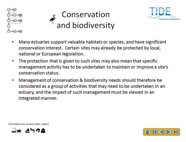 By placing the user’s area of interest into a broad classification (for example ‘Industry, infrastructure and port development’ or ‘Conservation & biodiversity needs’) it is possible to use this generic roadmap to direct the user to relevant supporting outputs from the TIDE project at each stage of the generic management process.